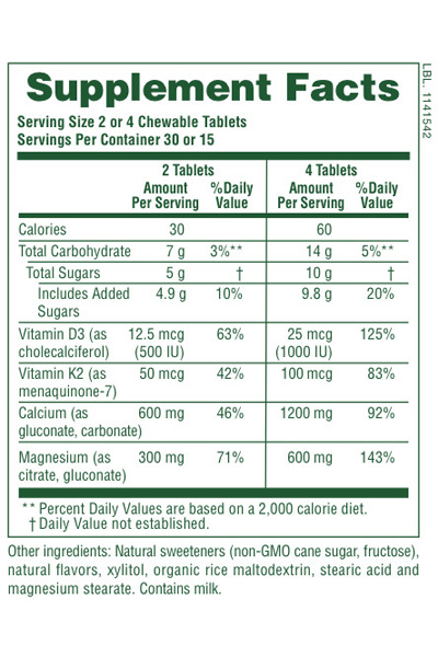 Η πρωτοποριακή αυτή φόρμουλα, λόγω της αυξημένης ενεργότητας των Βιτ. D3 (cholecalciferol) και Κ2 (menatetrenone), παρέχει αυξημένη απορρόφηση και εναπόθεση των μεταλλικών στοιχείων στα οστά, ενισχύοντας της οστική πυκνότητα.Το ασβέστιο, το μαγνήσιο και οι βιταμίνες D3 και K2 είναι ζωτικής σημασίας για το σχηματισμό γερών οστών και δοντιών. Επίσης είναι απαραίτητα για την υγιή λειτουργία του ανοσοποιητικού συστήματος.