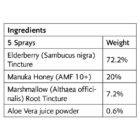 Εύγευστο σπρέι λαιμού από φρέσκο σκλήθρο (Sambucus nigra) με μέλι manuka και ρίζα marshmallow, κατάλληλο για όλη την οικογένεια. Παρέχει ανακούφιση απευθείας εκεί που χρειάζεται περισσότερο μέσω μιας αποτελεσματικής αντλίας ψεκασμού. Τα elderberries έχουν αναγνωριστεί ως πολύ καλή πηγή βιταμίνης C, που συμβάλλει στη φυσιολογική λειτουργία του ανοσοποιητικού συστήματος. Το elderberry έχει αποδειχθεί ότι συμβάλλει στην καταπράυνση του κοινού κρυολογήματος, ενώ η ρίζα marshmallow (Althaea officinalis) επιδεικνύει αντιβακτηριακή δράση και είναι καταπραϋντική για το στόμα και το λαιμό.