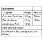 Το χρώμιο είναι ένα σημαντικό μέταλλο που συμβάλλει στη διατήρηση των φυσιολογικών επιπέδων γλυκόζης στο αίμα. Το πικολινικό χρώμιο είναι μια βιοδιαθέσιμη μορφή χρωμίου, που σημαίνει ότι απορροφάται καλά και έχει αποδειχθεί ότι συμβάλλει στο φυσιολογικό μεταβολισμό των μακροθρεπτικών συστατικών. Σε αυτό το σύμπλεγμα, το χρώμιο έχει συνδυαστεί με ψευδάργυρο και άλφα λιποϊκό οξύ για τη δημιουργία ενός συμπληρώματος διατροφής για διατροφική ευεξία. Ο ψευδάργυρος είναι ένα μέταλλο απαραίτητο για πολλές διεργασίες του σώματος, συμπεριλαμβανομένης της διατήρησης της φυσιολογικής γνωστικής λειτουργίας, της όρασης, της γονιμότητας και της αναπαραγωγής, των μαλλιών, του δέρματος και των νυχιών και του ανοσοποιητικού συστήματος.