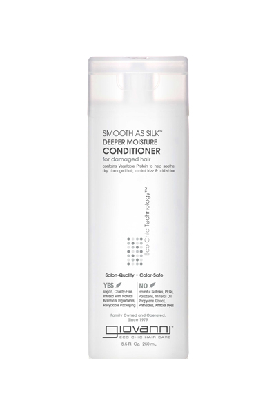 Μετάξι: έχει την πιο απίστευτη αίσθηση και την ωραία υφή. Το conditioner της Giovanni λειαίνει την τρίχα και κάνει τα μαλλιά μεταξένια. Αυτό το μαλακτικό βαθιάς ενυδάτωσης είναι ασφαλές στα βαμμένα μαλλιά και λειτουργεί μόνο όπου χρειάζεται για να δημιουργήσει μια μεταξένια λεία επιφάνεια. Η πλούσια υφή του μαλακώνει τα ξηρά και ταλαιπωρημένα μαλλιά και ενυδατώνει σε βάθος διατηρώντας τα μαλλιά σας για περισσότερο καιρό καθαρά και λαμπερά.