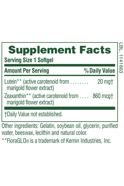 Μελέτες έχουν δείξει ότι όσοι λαμβάνουν υψηλές ποσότητες καροτινοειδών (ιδίως τα δύο ισχυρότερα:την λουτεΐνη και την ζεαξανθίνη) έχουν πολύ μικρότερα ποσοστά προσβολής από καταρράκτη και εκφύλιση της ωχράς κηλίδας, σοβαρές παθήσεις των ματιών, πολύ διαδεδομένες στις ηλικίες άνω των 60-65 ετών. Ευάλωτες πληθυσμιακές ομάδες: γυναίκες, καπνιστές, έχοντες μπλε μάτια, έχοντες ιστορικό υπέρτασης και καρδιαγγειακών παθήσεων, παχύσαρκοι, όσοι εκτίθενται πολύ στον ήλιο, όσοι τρώνε μικρές ποσότητες φρούτων και λαχανικών. Κάθε ταμπλέτα περιέχει 20mg Λουτεΐνη και 860 mcg Ζεαξανθίνη.