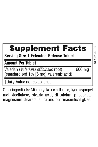 Εκχύλισμα βαλεριάνας 600mg σε ταμπλέτα βαθμιαίας αποδέσμευσης. Περιέχει 1% (6 mg) βαλερενικού οξέος υπεύθυνο για την ηρεμιστική δράση του φυτού. Ενισχυμένο με το σύστημα Actives sense για μέγιστη βιοδιαθεσιμότητα.
